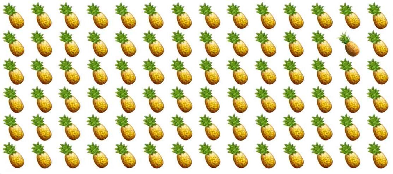Решете един прост, но много труден пъзел – трябва да намерите специален ананас, който е различен от всички, които виждате на картинката.