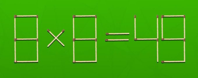 По-долу ще видите изображение, на което са разположени съчми, чието равенство е 8х8=49. Очевидно тук има грешка, защото произведението на тези числа трябва да е равно на 64.