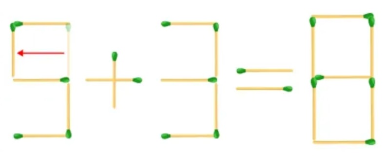 Тайната е в промяната на формата на числата: просто преместете едно съчетание, така че една от „тройките“ да се превърне в „петица“. След това примерът става абсолютно верен – 5+3=8.