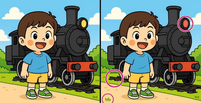 И така, готови ли сте за следващото предизвикателство? Разгледайте внимателно двете изображения на момчето, което стои до парния влак. На пръв поглед те изглеждат еднакви, но има три малки разлики. Мислите ли, че можете да откриете всички тях за 29 секунди? Опитайте и проверете остротата на зрението си!