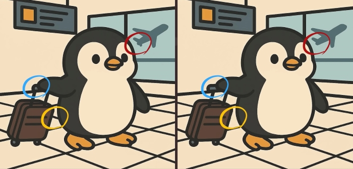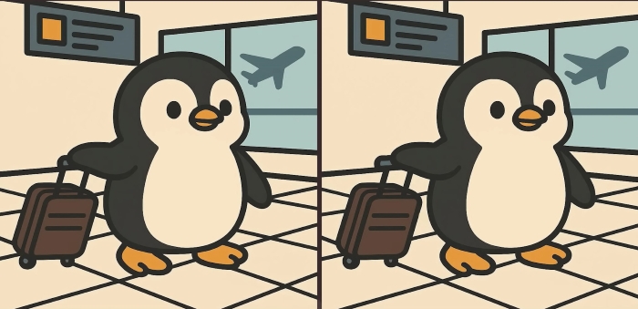 И така, готови ли сте за следващото предизвикателство? Вгледайте се внимателно в две изображения на сладък пингвин, който носи багаж на летището. На пръв поглед може да изглеждат еднакви, но на тях се крият 3 малки разлики. Мислите ли, че можете да откриете всички тях за 61 секунди? Опитайте и проверете остротата на зрението си!