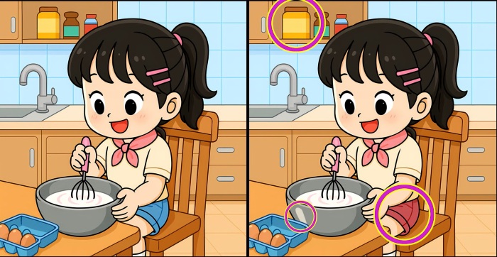 И така, готови ли сте за следващото предизвикателство? Разгледайте внимателно две изображения на момиче, което меси тесто за торта. На пръв поглед те изглеждат еднакви, но има три малки разлики. Мислите ли, че можете да откриете всички тях за 51 секунди? Опитайте и проверете остротата на зрението си!